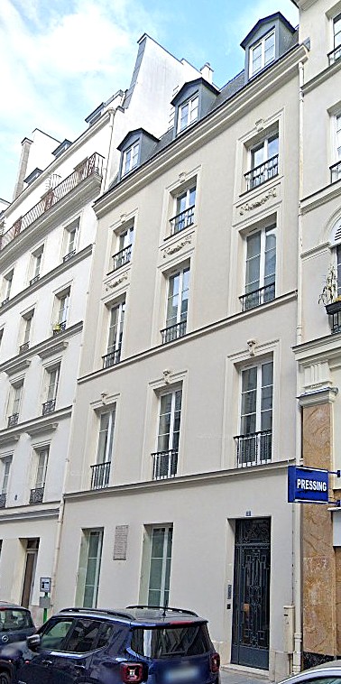 In the Annuaire-almanach du commerce, de l’industrie, de la magistrature et de l’administration (basically a city directory), from the 1840s to the 1860s, O. [sic] Guillié, ancien médecin (former doctor) and Madame [sic] Zélie Cardeilhac, former teacher at the Institut des Jeunes Aveugles, were living at 7, rue de Monsigny. During certain years, her brother the lawyer was also at the same address. The building is still there, and now functions as a hotel.