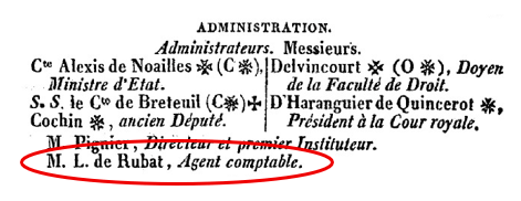 I found a clue in the Almanach Royal. In its list of administrators and employees at the school, it provided an initial (L.) – a bit odd, since they did not offer anyone else’s initial, and de Rubat is not such a common name that he might be confused with another accountant called de Rubat.