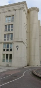 Philippa and I had just emerged from Notre Dame du Travail (our favourite Paris church and definitely a subject for a future blog) in the 14th and were headed towards the Gare Montparnasse. As we approached this modern apartment complex, we saw something on a pale wall.