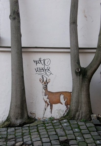 The deer was a work of surreptitiously placed art. Its creator must have printed it on thin paper, cut it out and glued it to the wall, another installation in Paris’s large and ever-changing collection of Street Art.