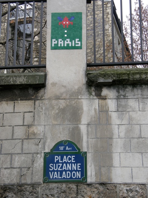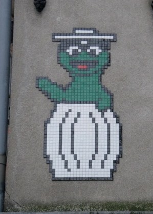 One of my favourite pieces of ceramic street art is the “Paris” image, which I photographed in December 2008 at Place Suzanne Valadon. As with Space Invaders–type figures and Oscar the Grouch, the “Paris” image also draws upon an element of popular culture.