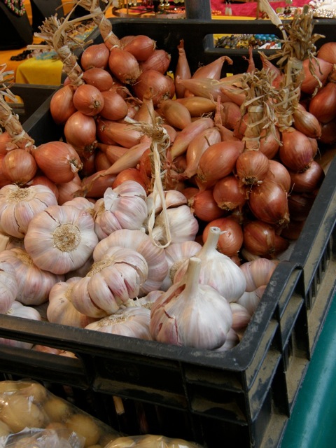 Every market abounds in shallots (échalotes). These smaller, richer and more flavourful offshoots of the onion family are essential components of traditional sauces such as béarnaise (white wine, vinegar, shallots, chervil, tarragon, thyme and bay leaf, to which are added eggs yolks and butter; this is often served with steak). The Romans apparently considered shallots an aphrodisiac; maybe this contributes to the French libido.