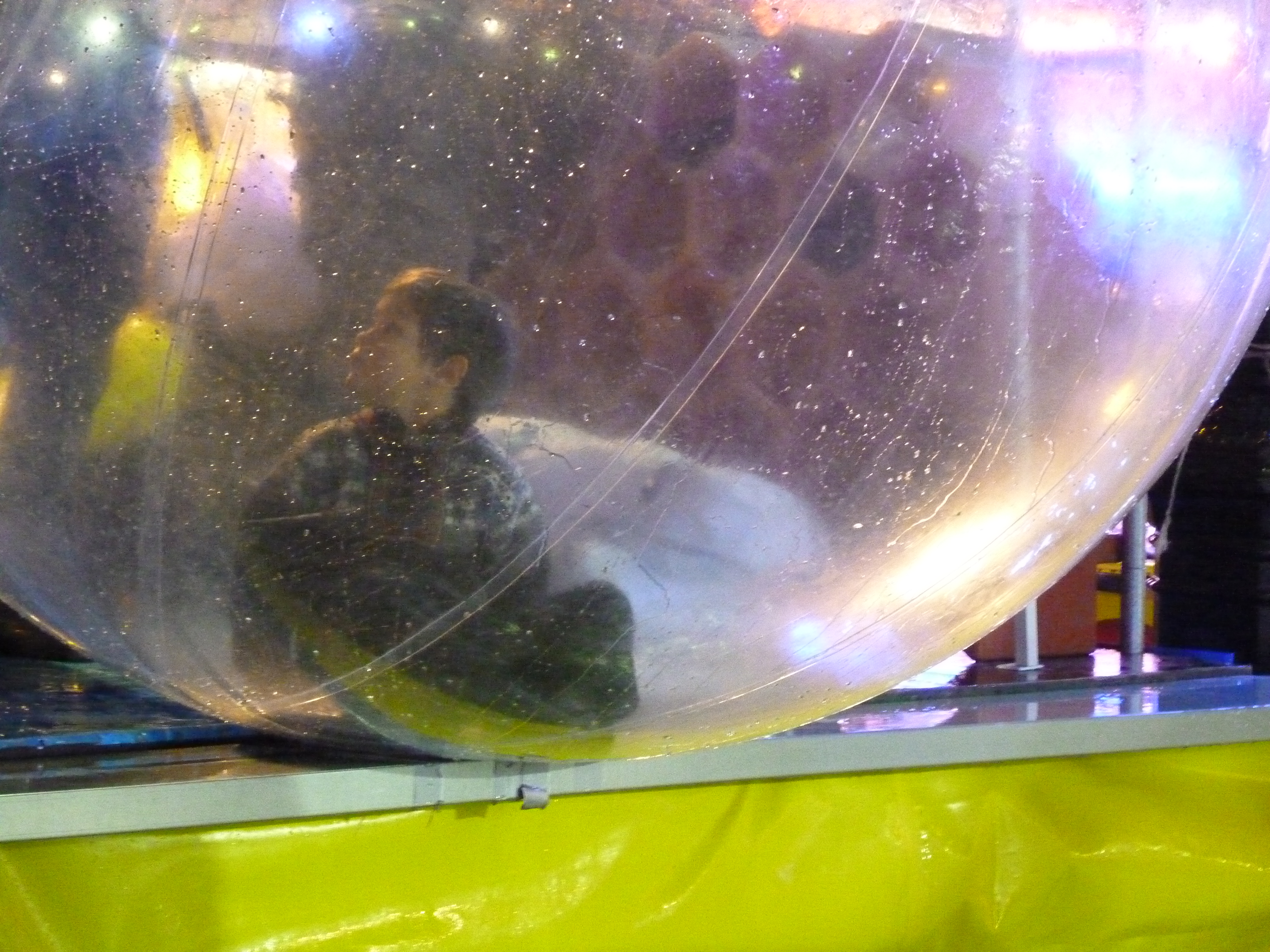We watched as a slightly apprehensive little boy was sealed into one of these things.