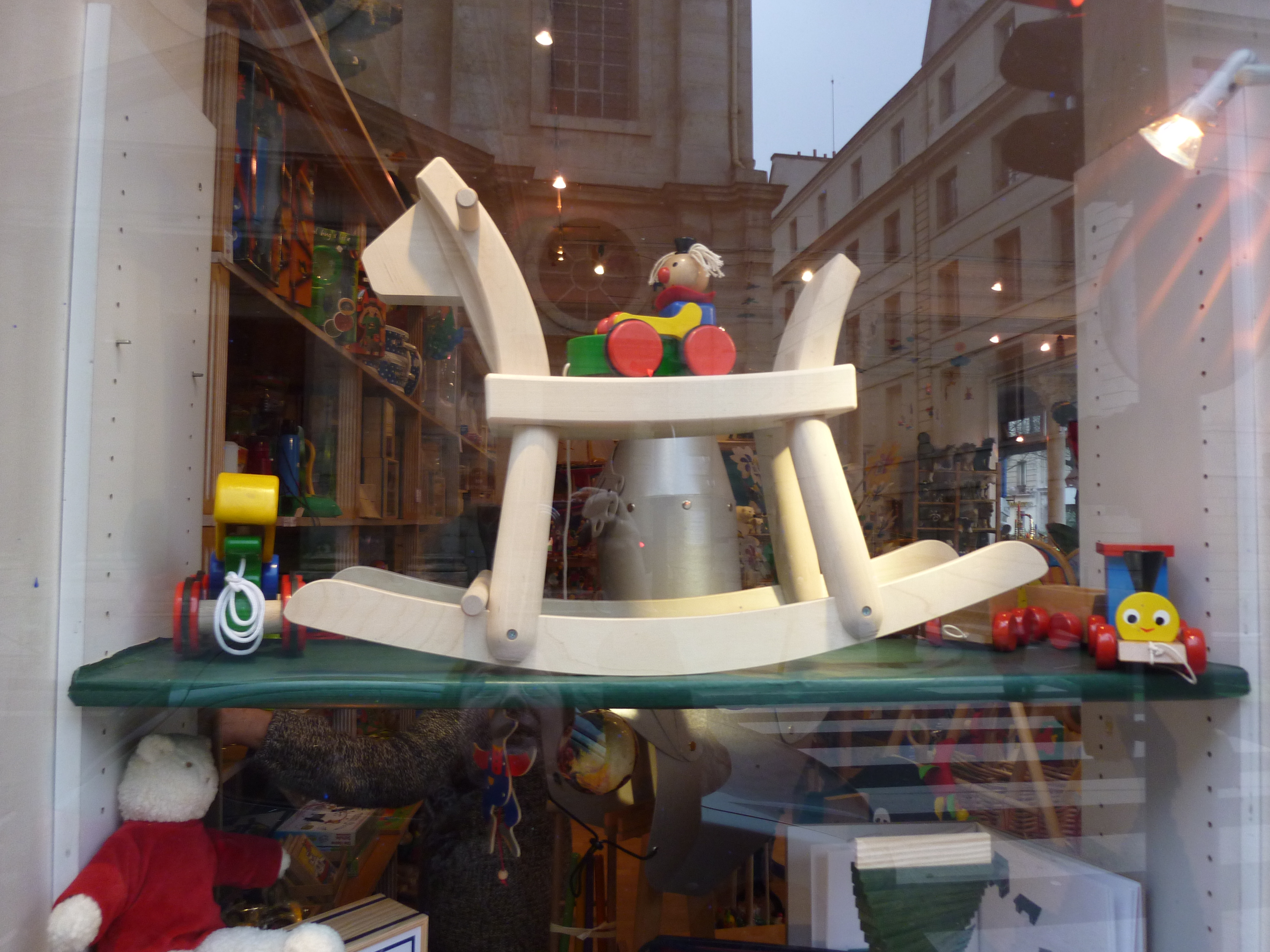 Children’s toy shops are a delightful exercise in nostalgia for grandparents, but the cynic in us wonders if the handmade wooden toys appeal to today’s children as much as computer games do. We honestly have no idea what French children do behind closed doors, but in the shops, the 1950s (heck, the 1920s) are alive and well.