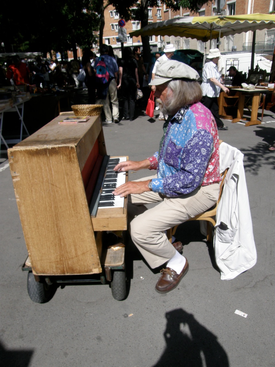 I am listening to Roland Godard et Son Piano à Tout Faire. That morning I could hear him playing his portable piano as I examined the Tir de Salon. With my jumbled but enthusiastic French, I chatted to the stall owner and we soon had a small crowd around the booth listening to tales of Buffalo Bill, Indians, horses, and Wild West encampments at Neuilly. The vendor even offered to reduce the price, but at some point he knew I was not going to buy it. Then the moment of truth. To my “Monsieur, est-ce-que je peux prend un photographie?” he countered with “Dix Euros, Monsieur.” I responded, “Ah Monsieur, c’est trop. Soyez gentil.” He motioned favourably.