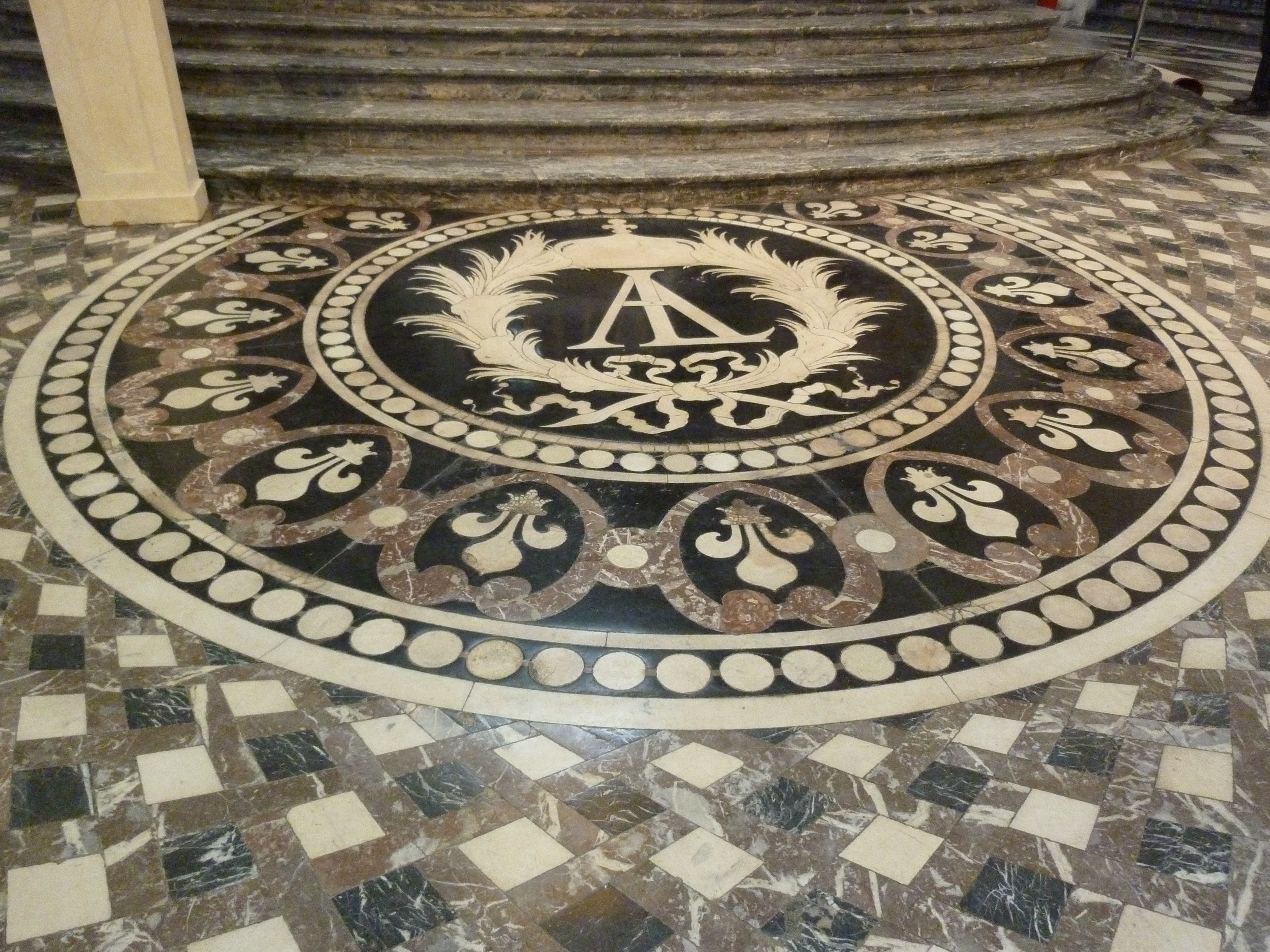 Around the nave and under the ceiling are some lovely bas-reliefs. The marble floor features a great many fleur-de-lys and the initials A and L for Anne and Louis are everywhere. But wait a minute….would that be Louis XIII or Louis XIV?