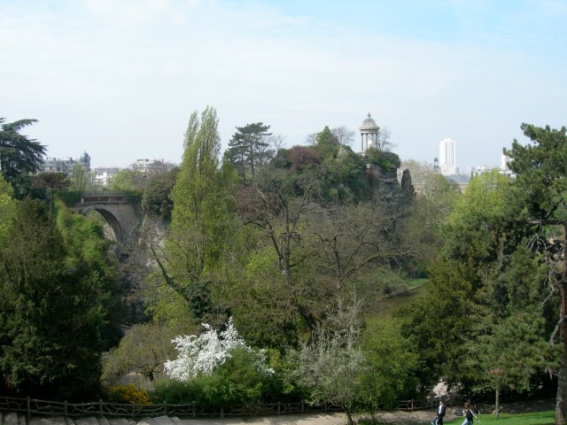 One of the paradoxes of Paris is that is it so densely populated and so green. Although the legacy of Napoleon III and Baron Haussmann is sometimes criticized, we can thank these two for many of the city’s loveliest parks. During the 17-year reign of Napoleon III, the city added 4,950 acres of woods, parks and gardens and planted 600,000 trees. Buttes Chaumont, the steepest and third-largest of Paris’s parks was one of those created in this period.