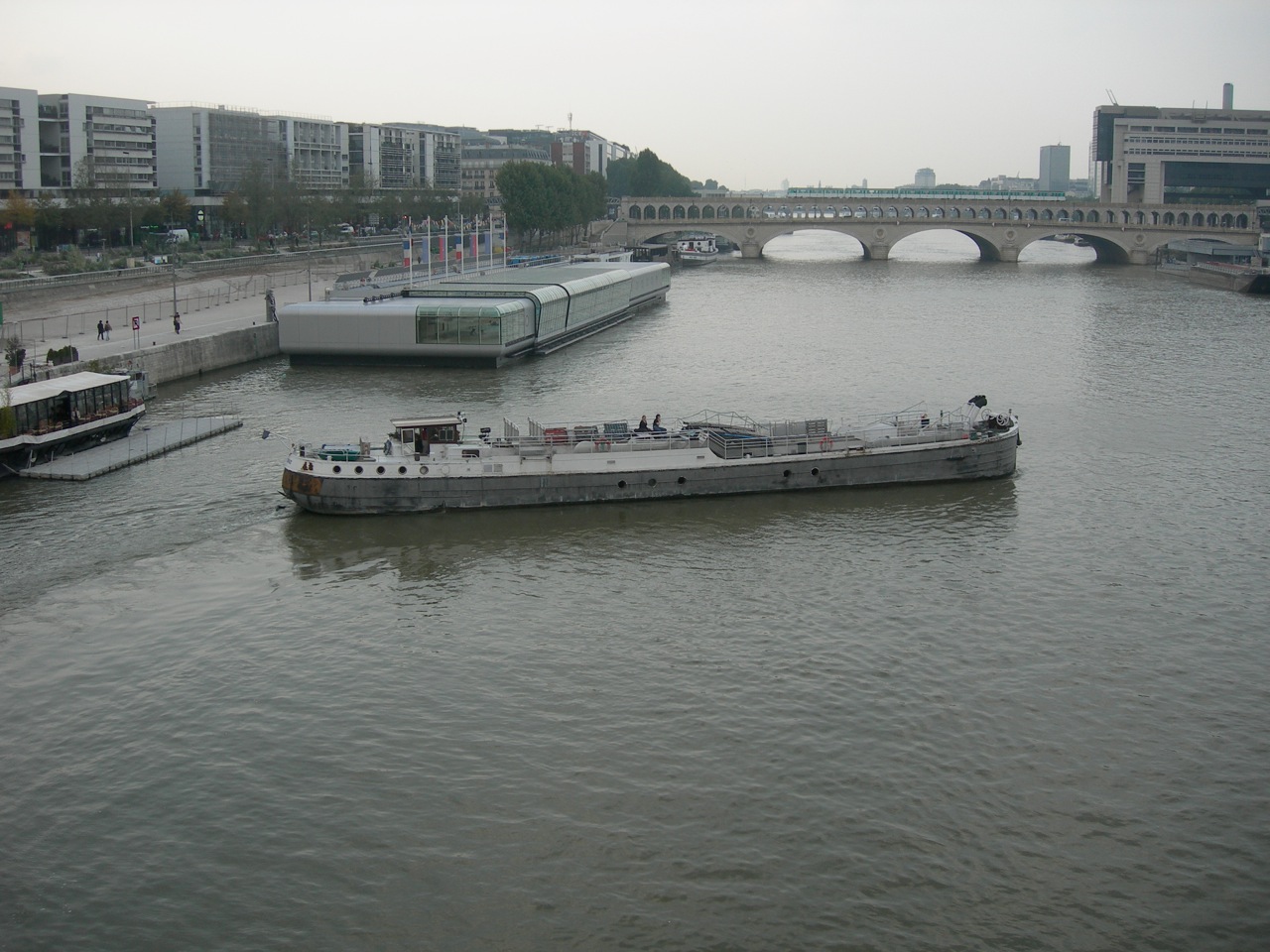 On a mid-October afternoon we walked from the National Library towards Bercy Park and lingered on the Passerelle (footbridge) Simone de Beauvoir to gaze at the Seine. It is still a working river that rewards those who take time to look quietly and slowly. In the near distance the barge Alternat drifted in front of the floating swimming pool anchored to the bank.