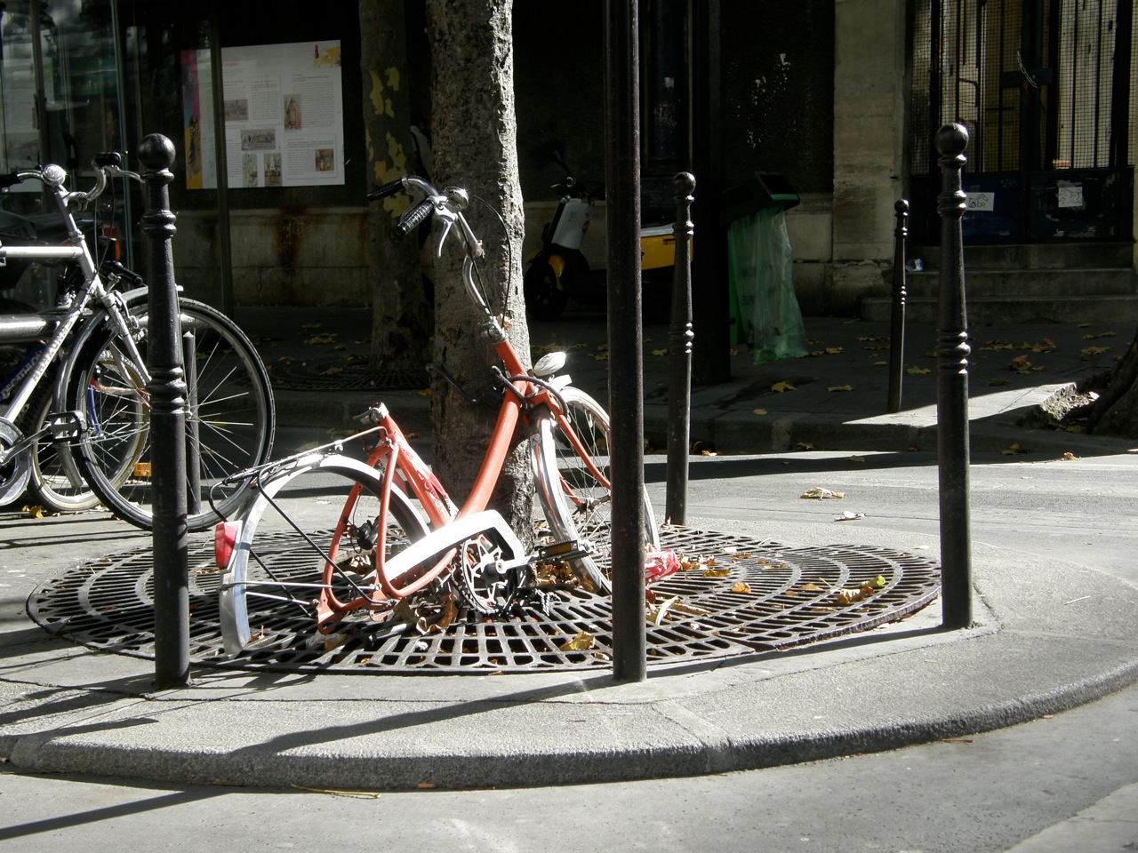 Very well observed. The bicycle may be King in Paris but as your photos remind us it is frequently subject to the most degrading treatment – I’ve seen some specimens that appear to have been blow-torched into oblivion.