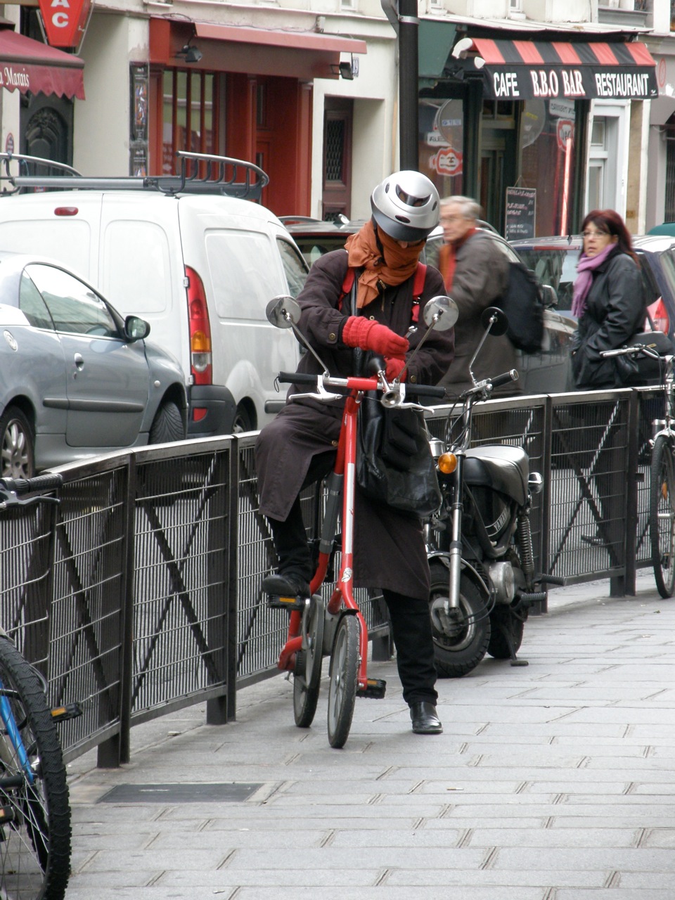 Much more than fashion, a sense of style pervades Paris. The elegantly turned-out man preparing to ride away on his folding bicycle on a November afternoon looks unmistakably Parisian. And the open-ended wrench (or spanner, as the British would say)? It’s a fine touch, the sort of artful prop one might find in a fashion shoot. But no, it was real, part of something I spotted during a flâneur’s moment on a Parisian street.