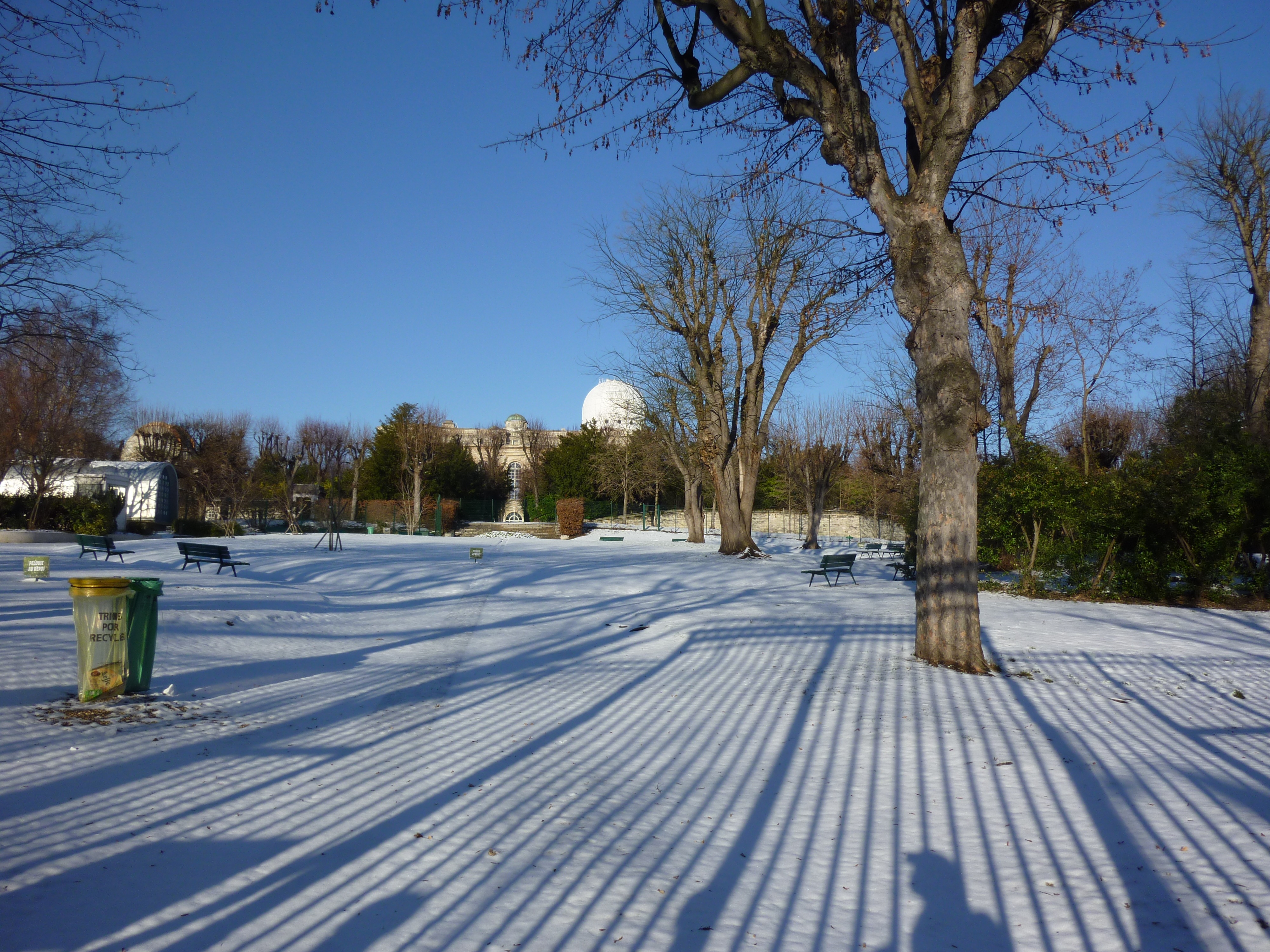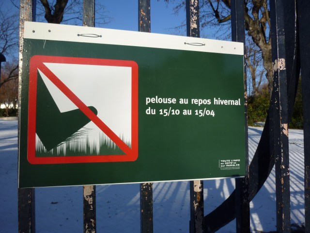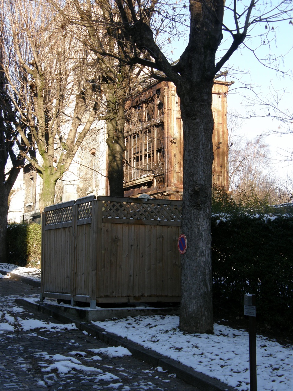 We spotted some odd, falling-down buildings on the south side from the boulevard Arago. The closest one, which is almost a skeleton, seems to be made of metal and has at one time been heavily insulated. We wondered if it had been used for cold-temperature experiments.