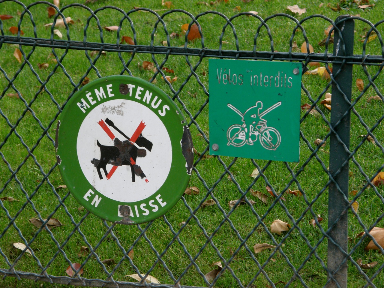 Many modern signs announce other kinds of social standards. Cities succeed only because people cooperate voluntarily in upholding certain norms. But sometimes we need reminders of how to behave in areas we share with many others. It is a nice dog but….