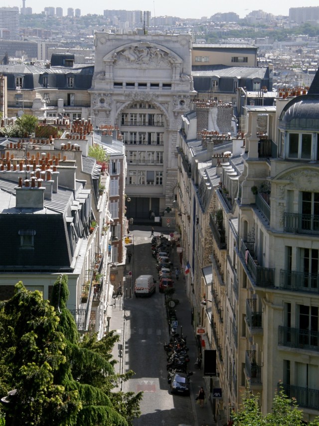 We wondered if the view from the Butte Montmartre would still show the street in front (rue André del Sarte). We climbed the steps at the end of the street and headed into the Louise Michel park to take a look.