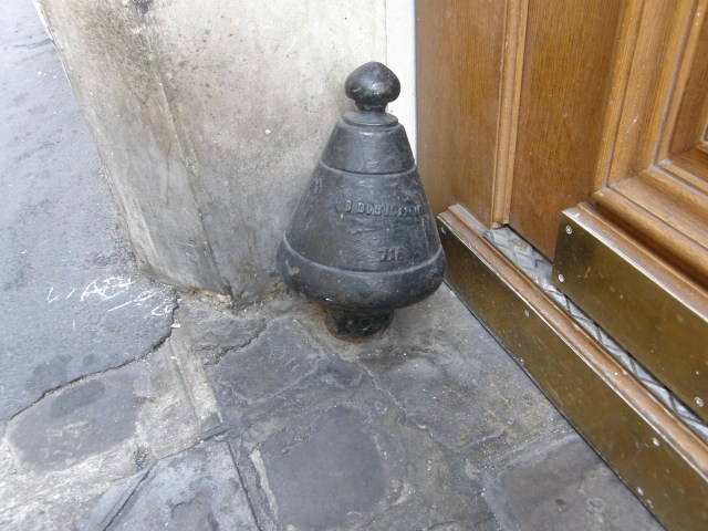 Paris often reveals itself in the details. And as a historian of design and technology, I am drawn to the many different ways that the French seem to find for doing the same thing. In this case, protecting the sides of the wide double doorways or archways known as portes cochères from the damage by the wheels and sides of carriages or carts — now cars and trucks — going through them. Like the spikes of the anti-burglar devices I looked at in an earlier blog, they say: keep your distance. I photographed many of these devices before I even knew their name.