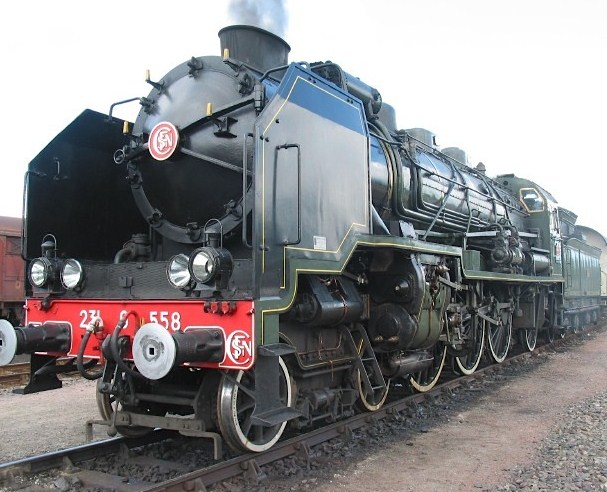 *From my train-loving industrial designer friend Ken I learned that the 231 referred to the number and purpose of the axles on the locomotive. He writes “starting from the front, there are two axles in the guide truck, the subassembly that helps guide the locomotive into curves. Then the 3 axles for the 3 sets of driving wheels; they’re almost always pretty big. Following that, the Pacific type has a single trailing truck (one axle) that helps hold up the back end.” Each axle has two wheels, and in the American system, which counts wheels rather than axles, the European Pacific 231 becomes the Pacific 462. Train buffs will appreciate a video clip showing the members of l’Association Pacific Vapeur Club, who lovingly maintain and operate a Pacific 231.