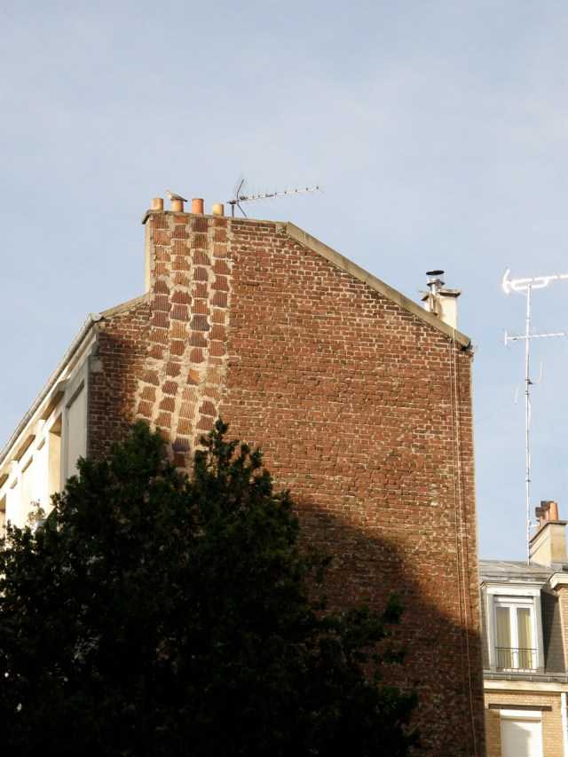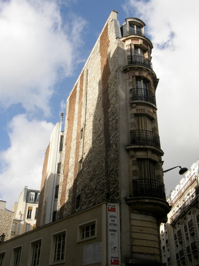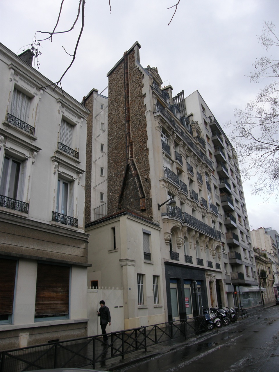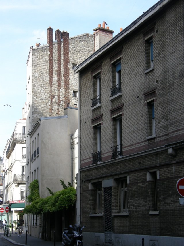Or this one, not far away on the rue de la Sablière, where it is clear that a building has been taken down, leaving a wedge-shaped house that is too narrow even to call a flat-iron building.