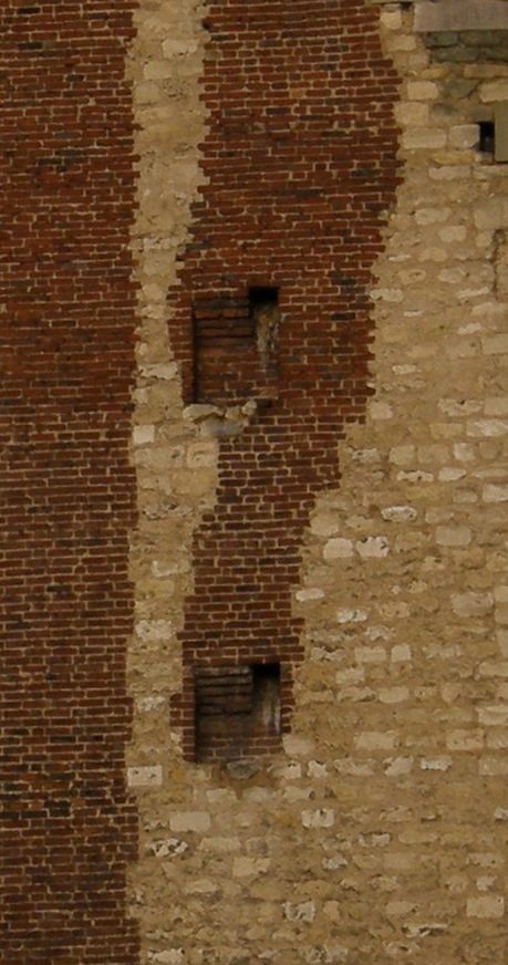 The coarse exposed stonework suggests an earlier wall. When we zoom in more closely, we can see some important details.