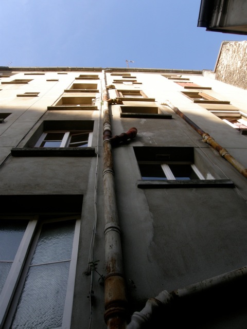 Visitors to Paris are sometimes intrigued—well, okay, I was intrigued—by the collections of exterior drain pipes that collect water from roofs as well as interior waste water (not sewage). Where does the water go? Follow the route of the pipes and you will see.