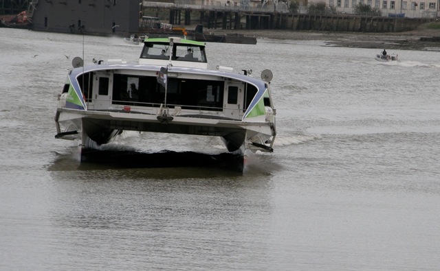 Moving quickly and turning sharply, the catamaran headed towards us at the dock at Greenwich. It looked like one mean mother of a boat. The Thames Clipper gets you to London in a hurry.