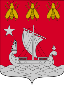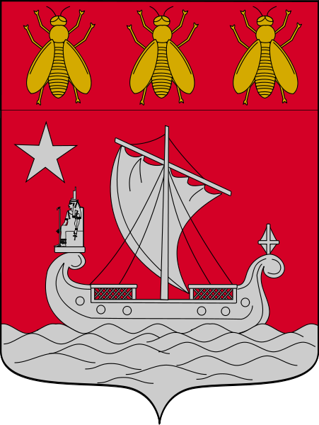 French Wikipedia notes that the coat of arms may have one, two or three masts and might or might not have oars. It also shows the standard version and two interesting alternatives.