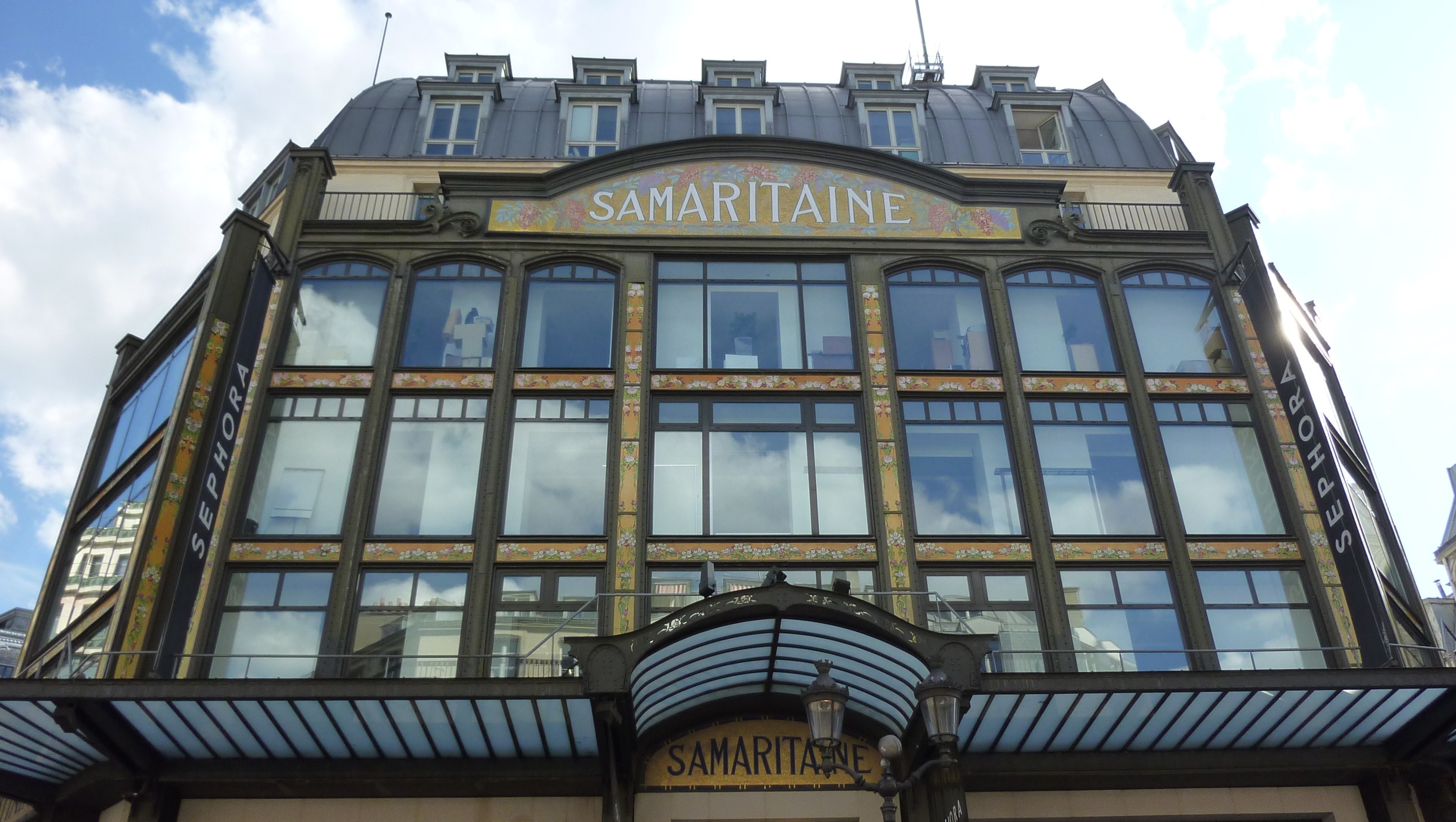 In fact, if you like colour, the grands magasins are awash in it. This façade of La Samaritaine is practically nothing but glass and mosaics, with some iron beams holding the whole thing together.