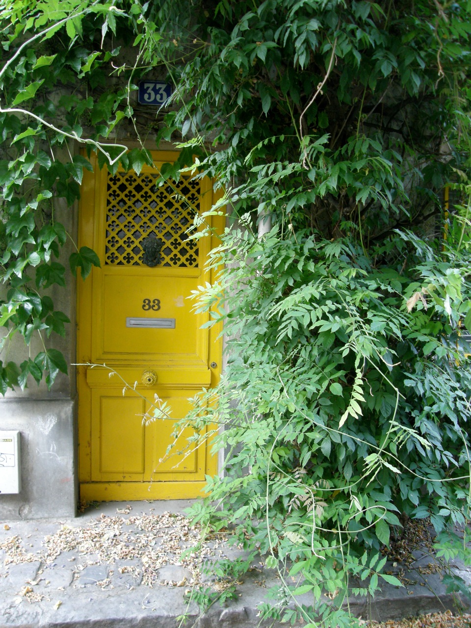 …and the bright yellow on this half-hidden door in the rue des Thermopyles.