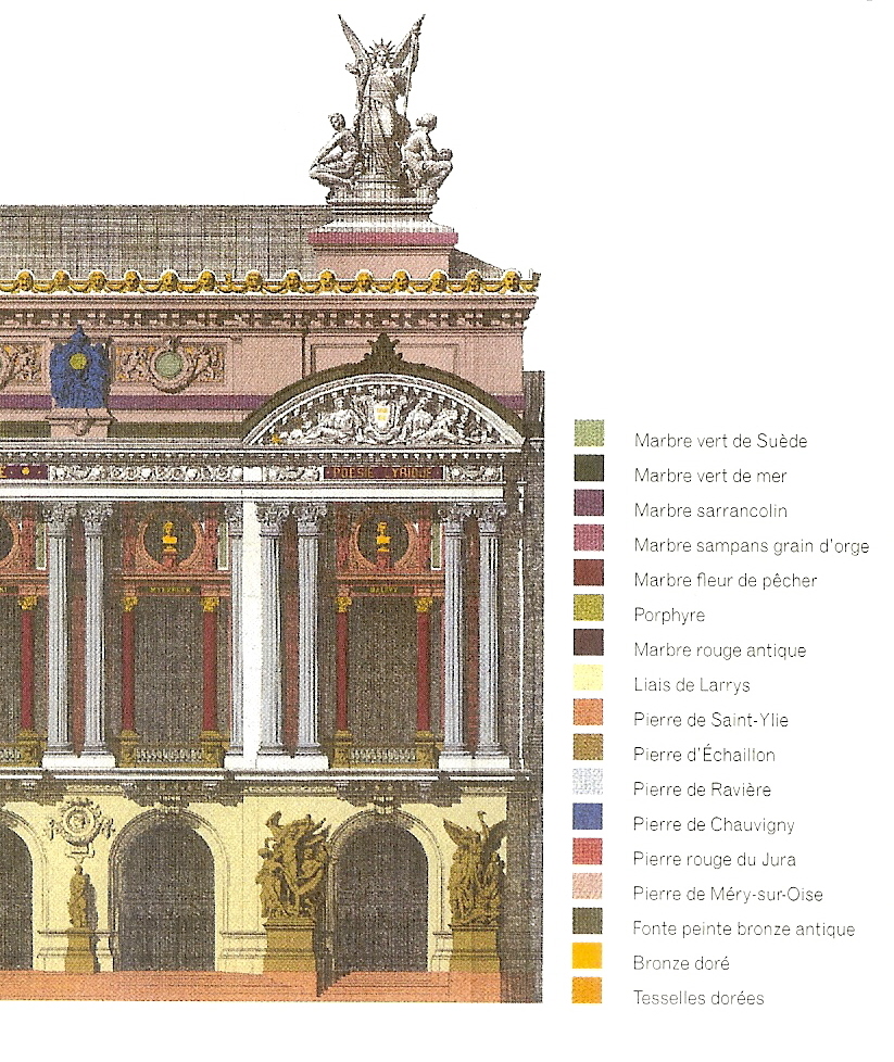 Of course, there is colour and colour. Some of it is fairly subtle. For example, there are at least 17 different building materials of different hues on the façade of the Opera (even before you consider the gold roof or the gilded mosaics), ranging from green Swedish marble to red stone from the Jura. Alain-Charles Perrot, the architect who supervised the restoration in the late 1990s, mapped them all so that replacements could be sourced from the original locations as much as possible.