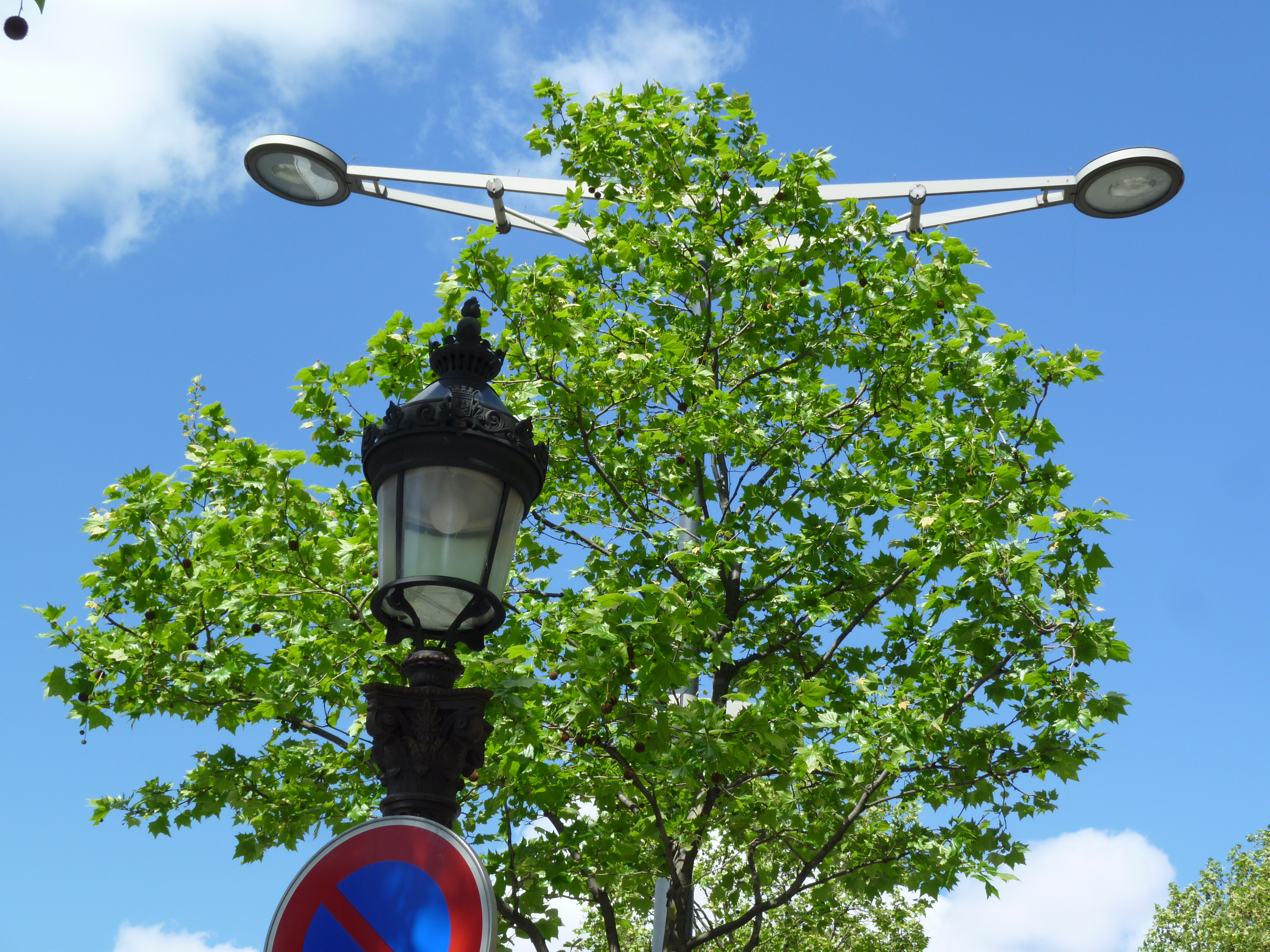 This one near Les Invalides combines old-fashioned style with modern practicality on a single pole.