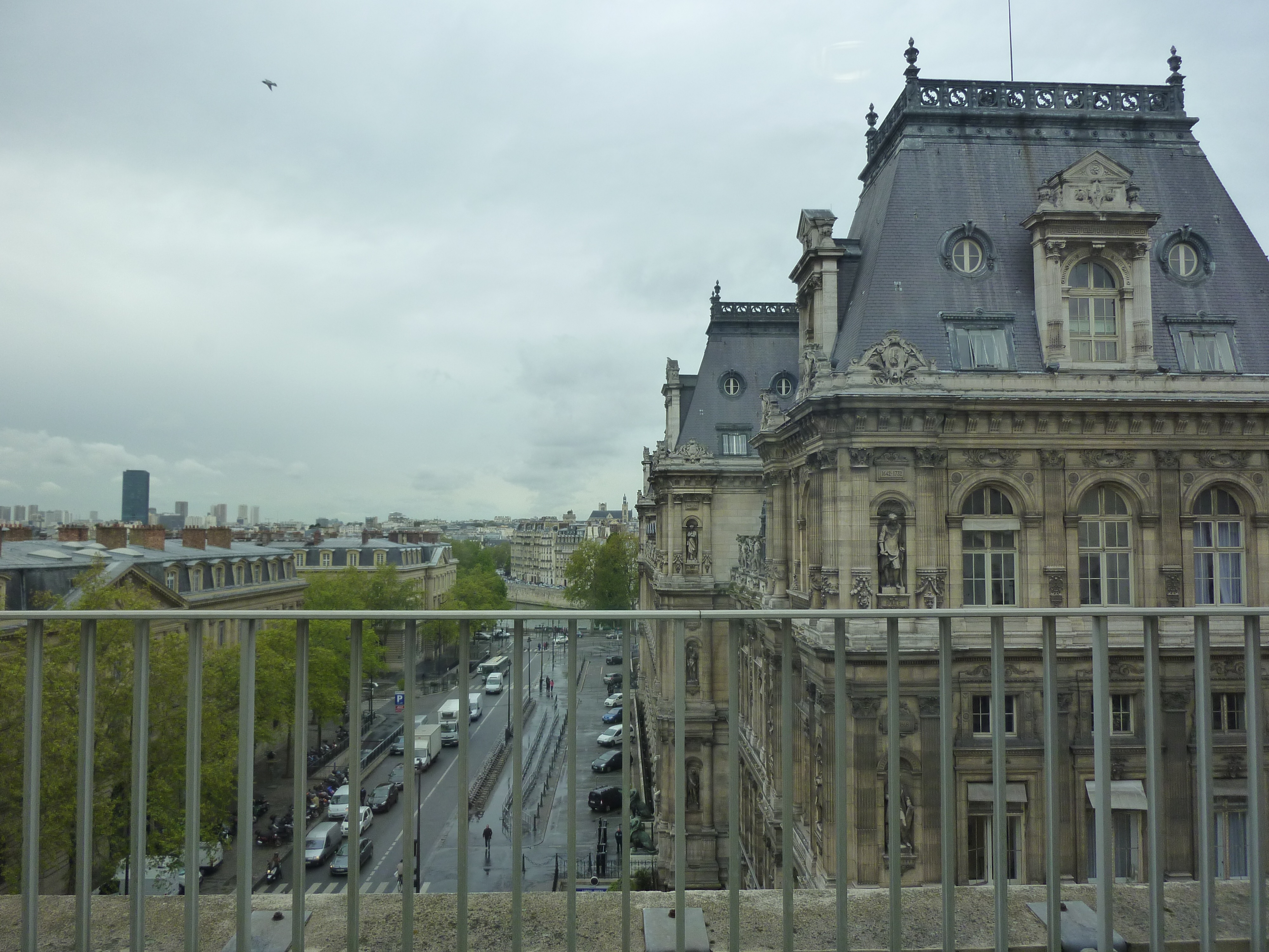 After lunch, we took the escalators back down to the ground floor and walked out to the street. I began to notice things about the BHV I hadn’t registered before.The back of the building doesn’t resemble the front, and the front doesn’t resemble, well, anything much. There’s a Belle Epoque dome at one end and a plain, squarish entry at the other end and in between is a series of traditional-looking buildings with more modern storeys on top of some of them.