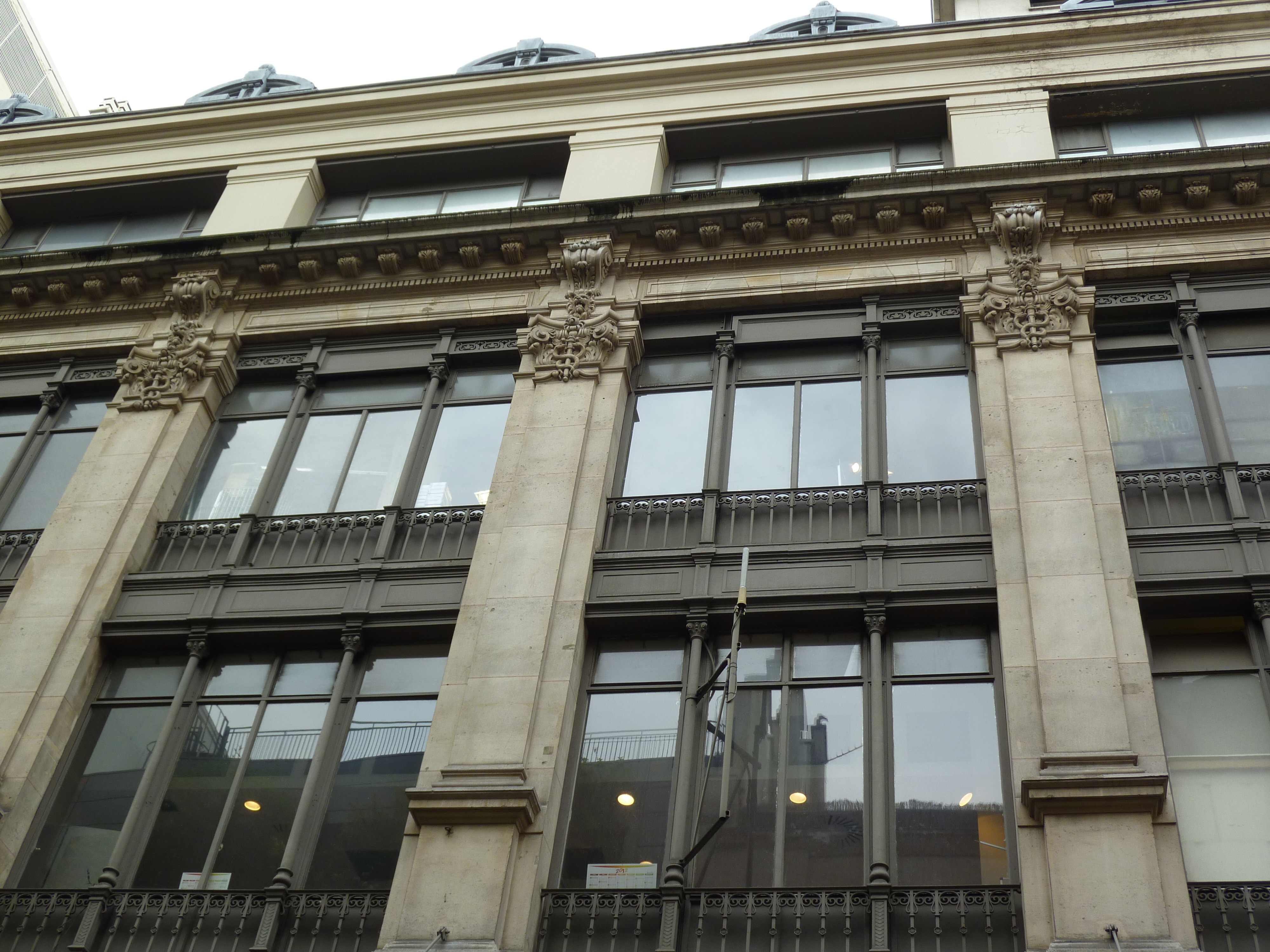 Was it Roy who designed the grand dome on the corner and the purpose-built section on the north side? Whatever happened in 1912-13, it seems to have been a retrofit, not a new building. This would explain why the place lacks a glorious atrium and glass roof, which characterize many of its competitors, and why the interior is often hard to navigate. The photo below shows the juxtaposition of two of the building styles that make up the BHV.