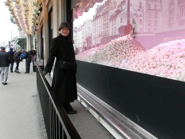It is not just the children who adore the Christmas window displays. I keep coming back to the joyful animation in this Bon Marché Christmas window. And the lady beneath the hat? She is the one who introduced me to Paris. We both bought hats from the same hat maker at a craft market on the Boulevard Edgar Quinet.