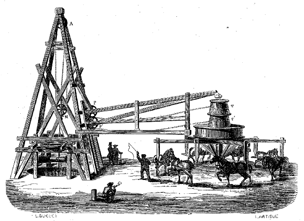 Some artesian wells tap water very close to the surface. Not the one at Grenelle. Drilling started in the abattoir courtyard. It was a risky business, demanding both faith and technical competence. The political driver was the mayor of Paris: at the time, one François Arago, now remembered more as a famous physicist. The engineering was entrusted to Louis-Georges Mulot, who had successfully drilled other artesian wells in France.