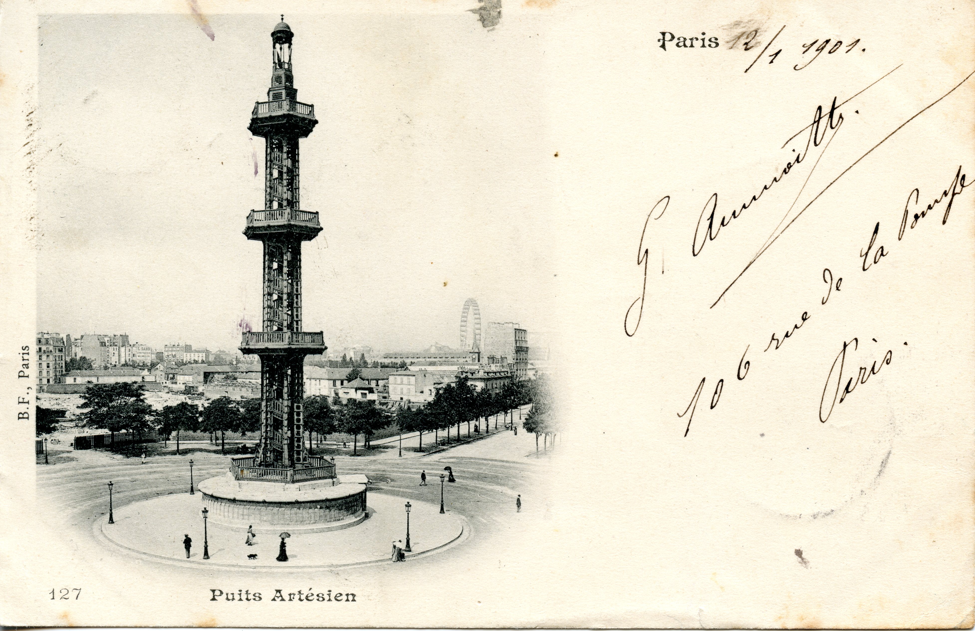 For more information on the artesian well, I recommend this site: Centenaire 1911-2011 des rues Lapparent-Vaudoyer-Heredia