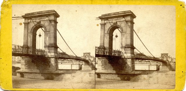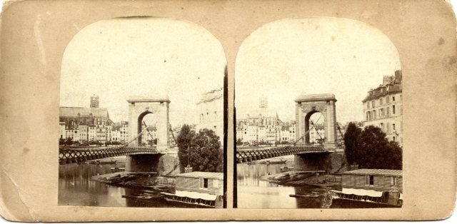 As my interest in Paris suspension bridges grew, I came across the stereoview shown below, showing another suspension bridge in Paris, the Pont de Constantine.