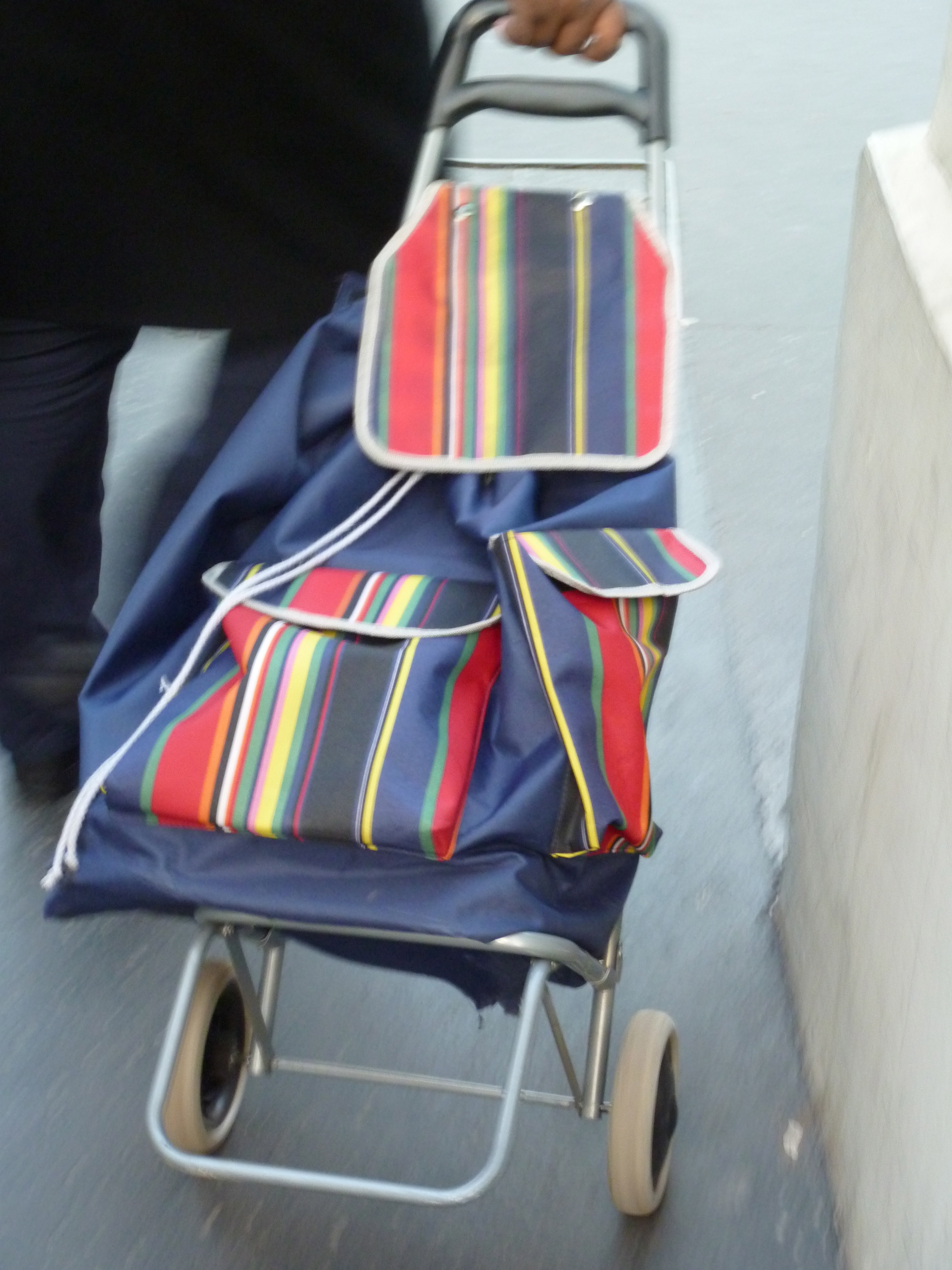 A chariot de courses sounds so much nicer than a shopping trolley – you could almost tempt me to buy one! I used my mother’s once to do her shopping, and it was a nightmare bumping it up and down kerbs, avoiding dog poo, and trying not to bang it into people.