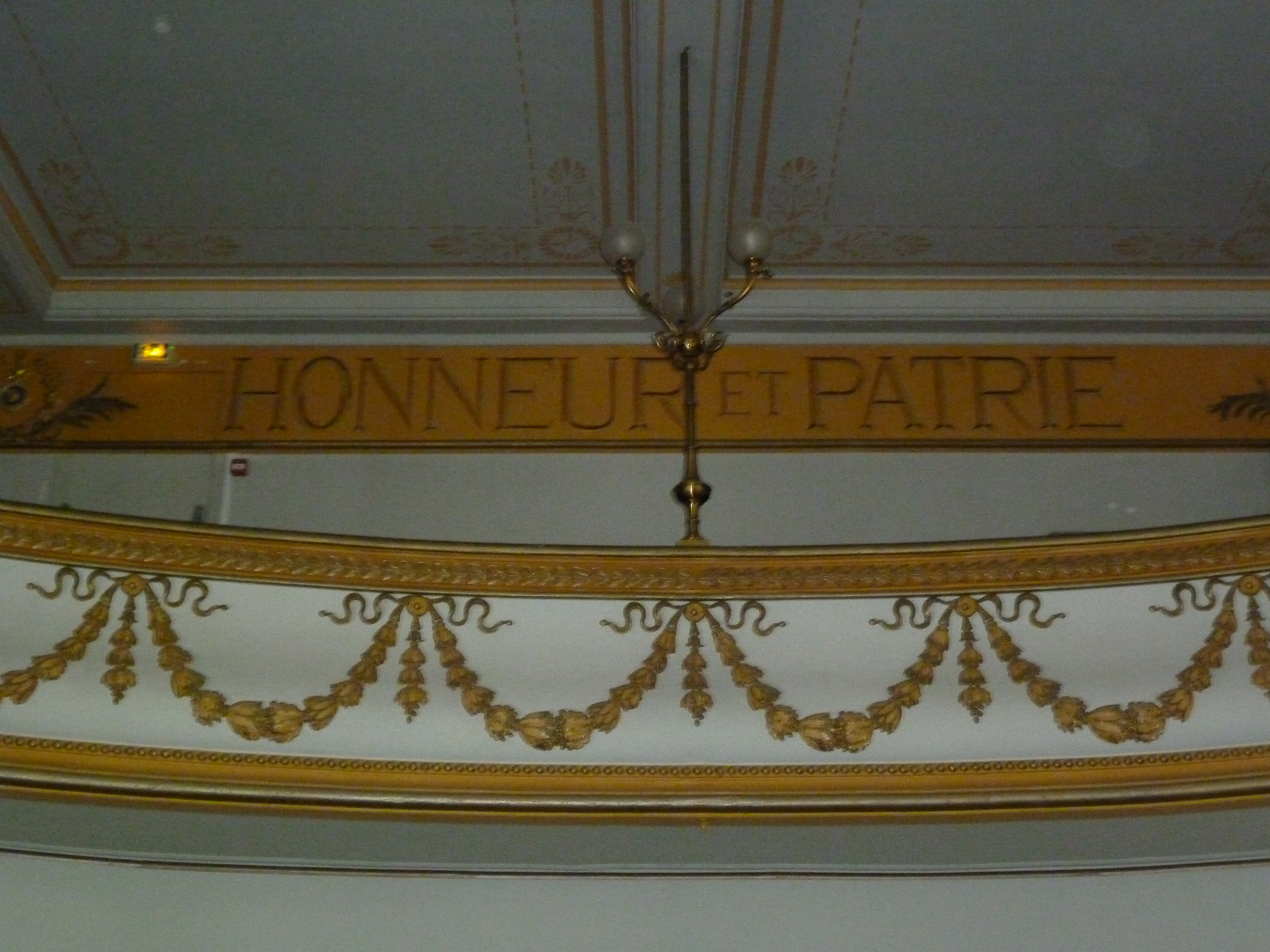 We saw the cloister (the largest in all of France), the old library, and the music room, which is also used for end-of-term ceremonies. Instead of the usual “Liberté, Egalité, Fraternité” on the wall, we saw “Honneur et Patrie” (Honour and Country).