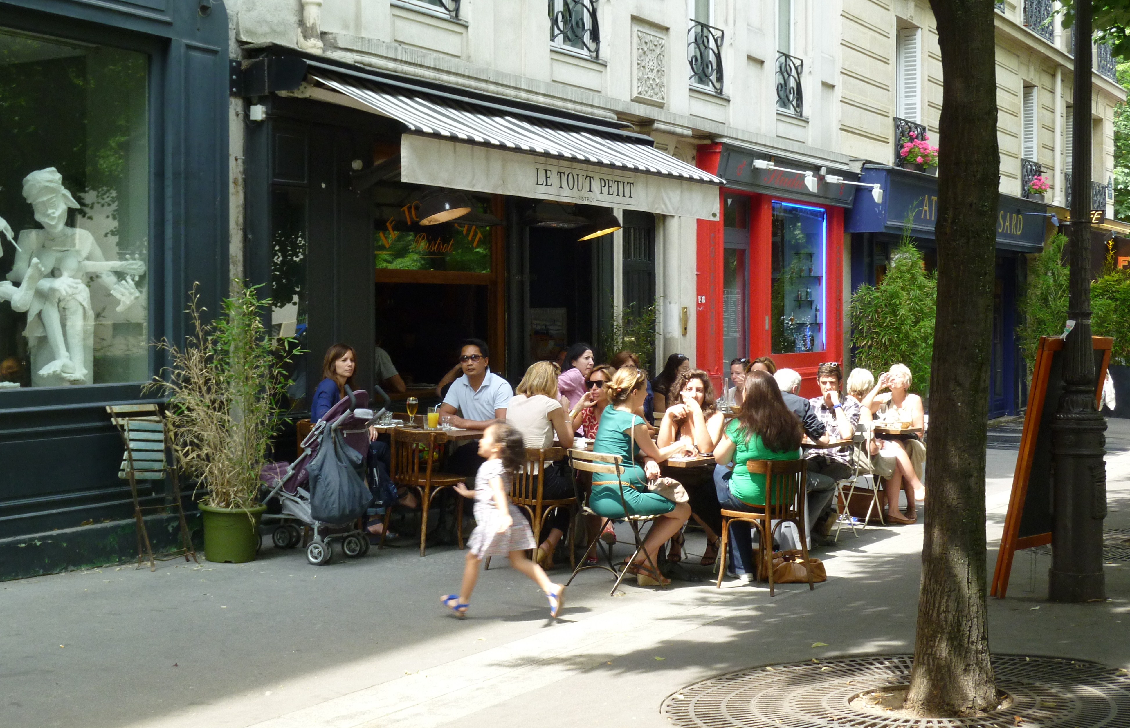 After a morning ramble, we had lunch under the trees at le Tout Petit, which seemed appropriate for a quartier filled with children. The couple on the left, who lived in the area, said it was very child-friendly.