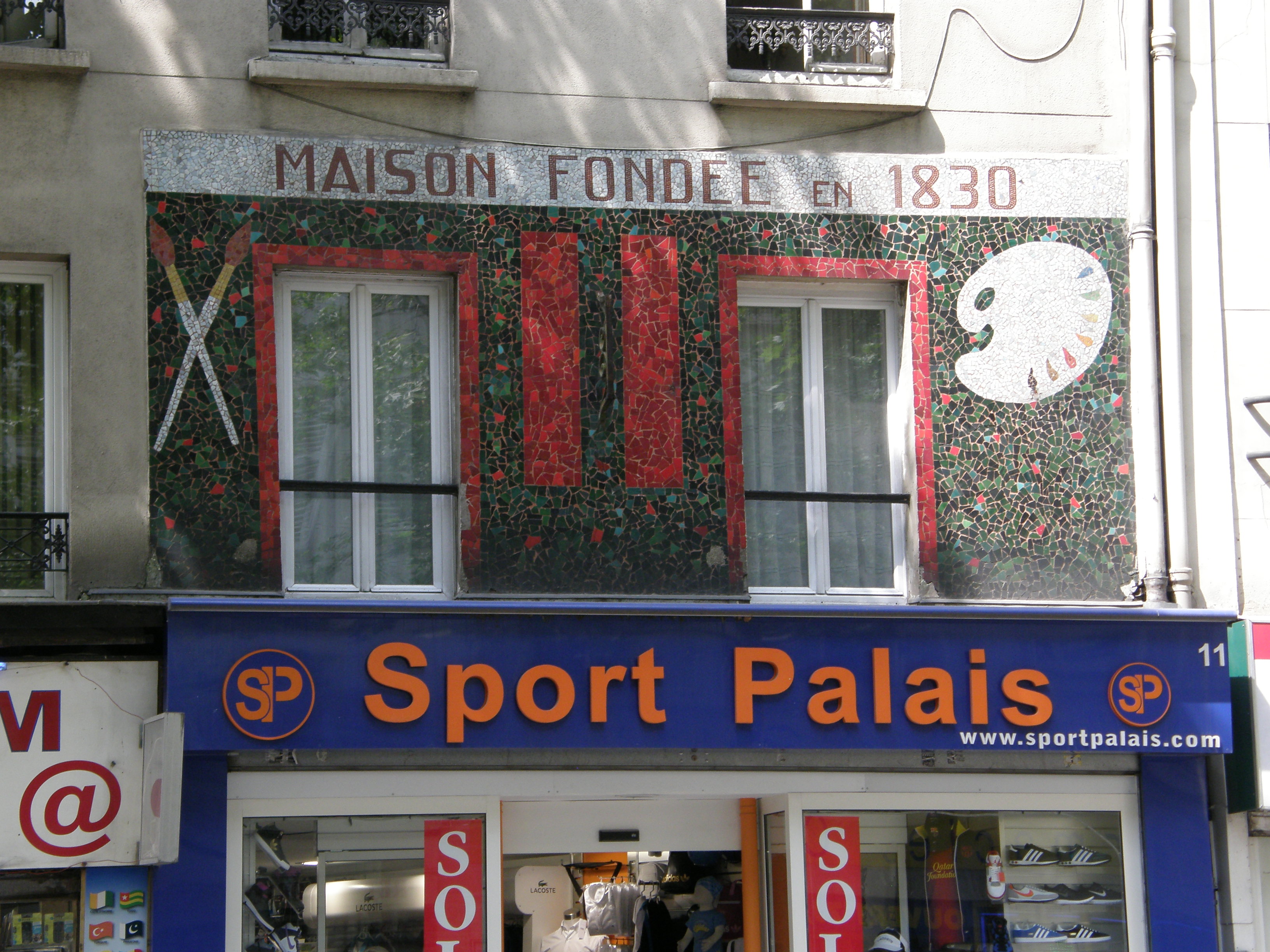 This was once the establishment of G. Hennequin, a merchant in “Couleurs Fines, Toiles et Pinceaux” (fine colours, canvases and brushes). Some Impressionist canvases still bear a paper sticker with the name of the shop on it. It functioned as an art supply store until 2010. You can see what it used to look like here.