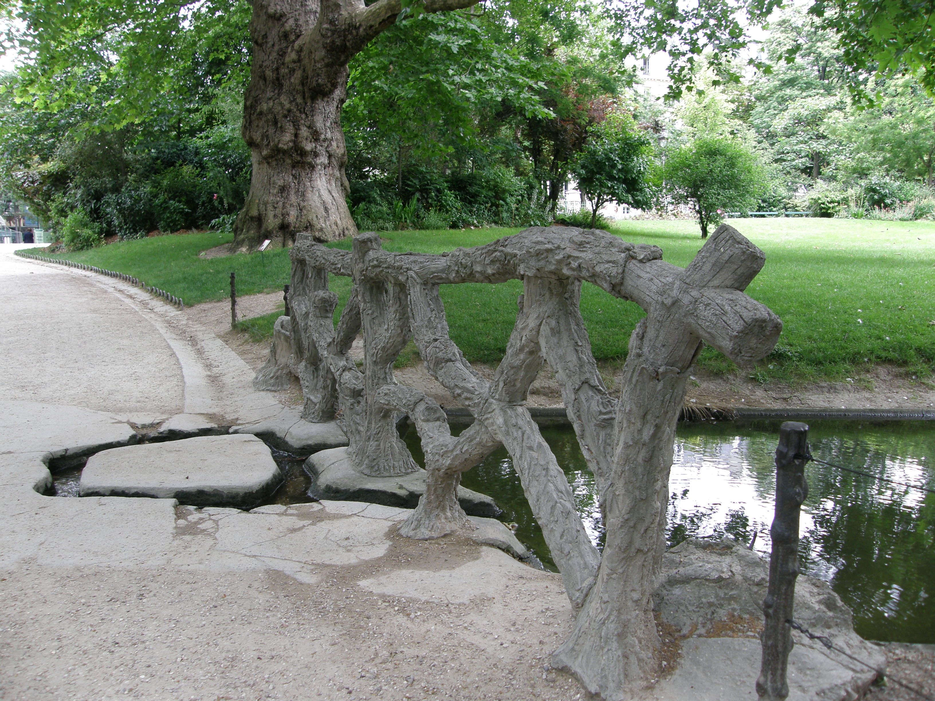 We later saw the couple from the café with their children in the playground that is part of Square des Batignolles. We can thank Adophe Alphand (again) for the design of this miniature wonderland. You enter down a winding little path, lined with Norman’s favourite concrete-made-to-look-like-wood.