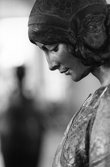 She had already been drawn to realistic sculpture. As she explains, “I am able to photograph the work from angles so that I can make it appear human.” She photographs using natural light, without reflectors or flashes and uses traditional film to create portraits of people who just happen to be in stone or bronze, rather than flesh.