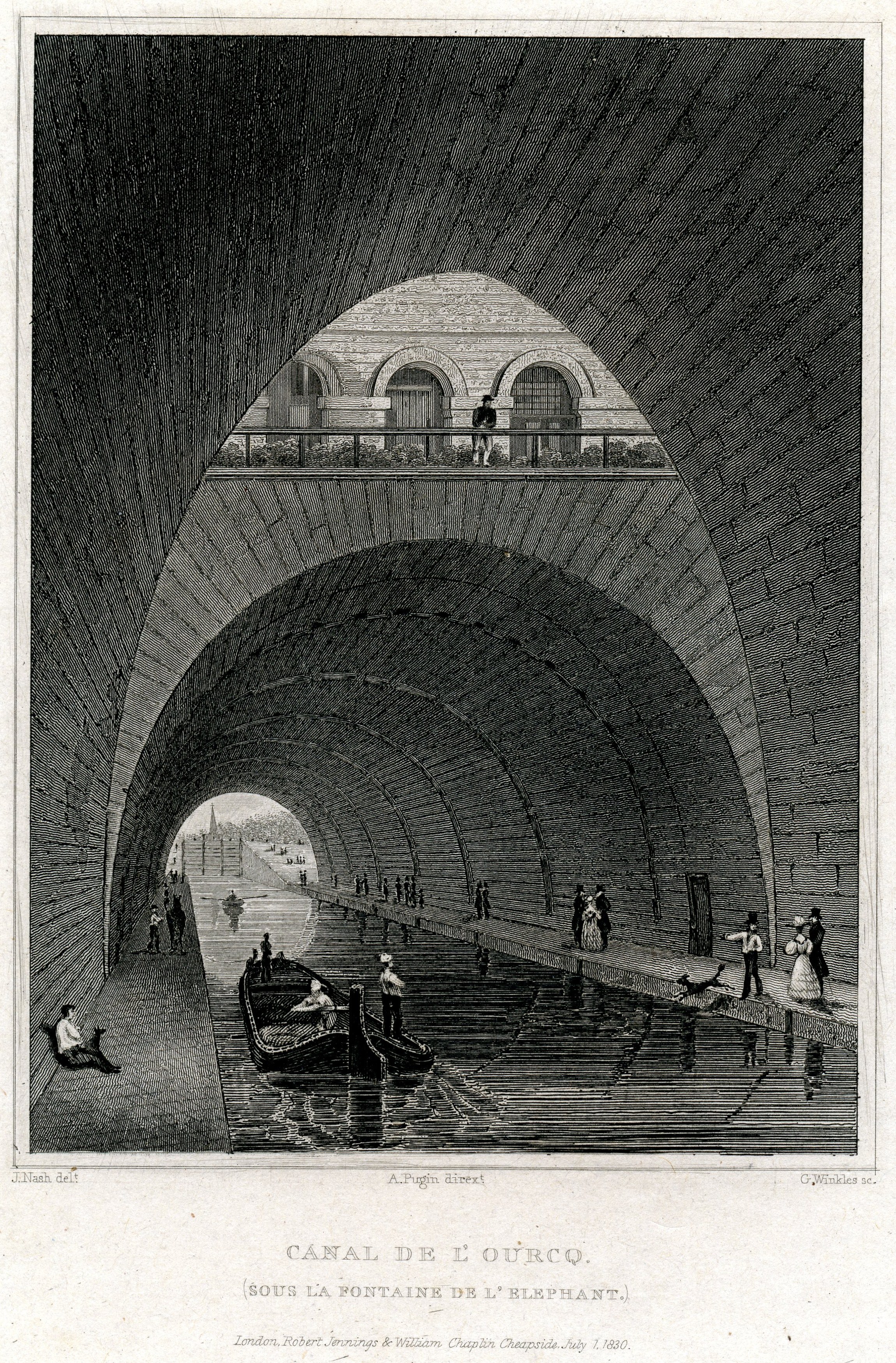 The Canal de l’Ourcq shown above has the intriguing subtitle, “Sous la fontaine de l’éléphant” (under the elephant fountain). What elephant would that be?