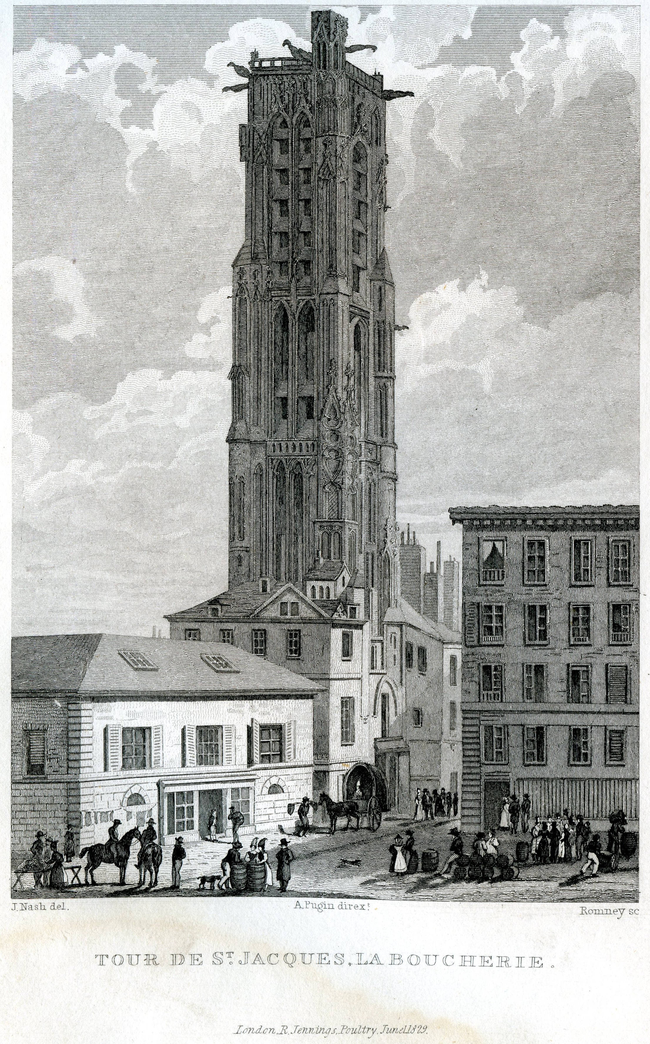 Paris and its Environs was Pugin’s way of recovering from a financial trough after losing a lawsuit. The book was intended for a middle-class audience and was an early type of travel guide. Not everyone enjoyed such books. One contemporary writer grouped it in with other travel guides as “the damdest, lying, ill got up, money-getting clap-trap possible” while another praised it, noting “the name of Mr. Pugin was a guarantee for the excellence of the drawings…and the superintendence of Mr. Heath was an assurance that the pencil would be done justice to by the burin.”