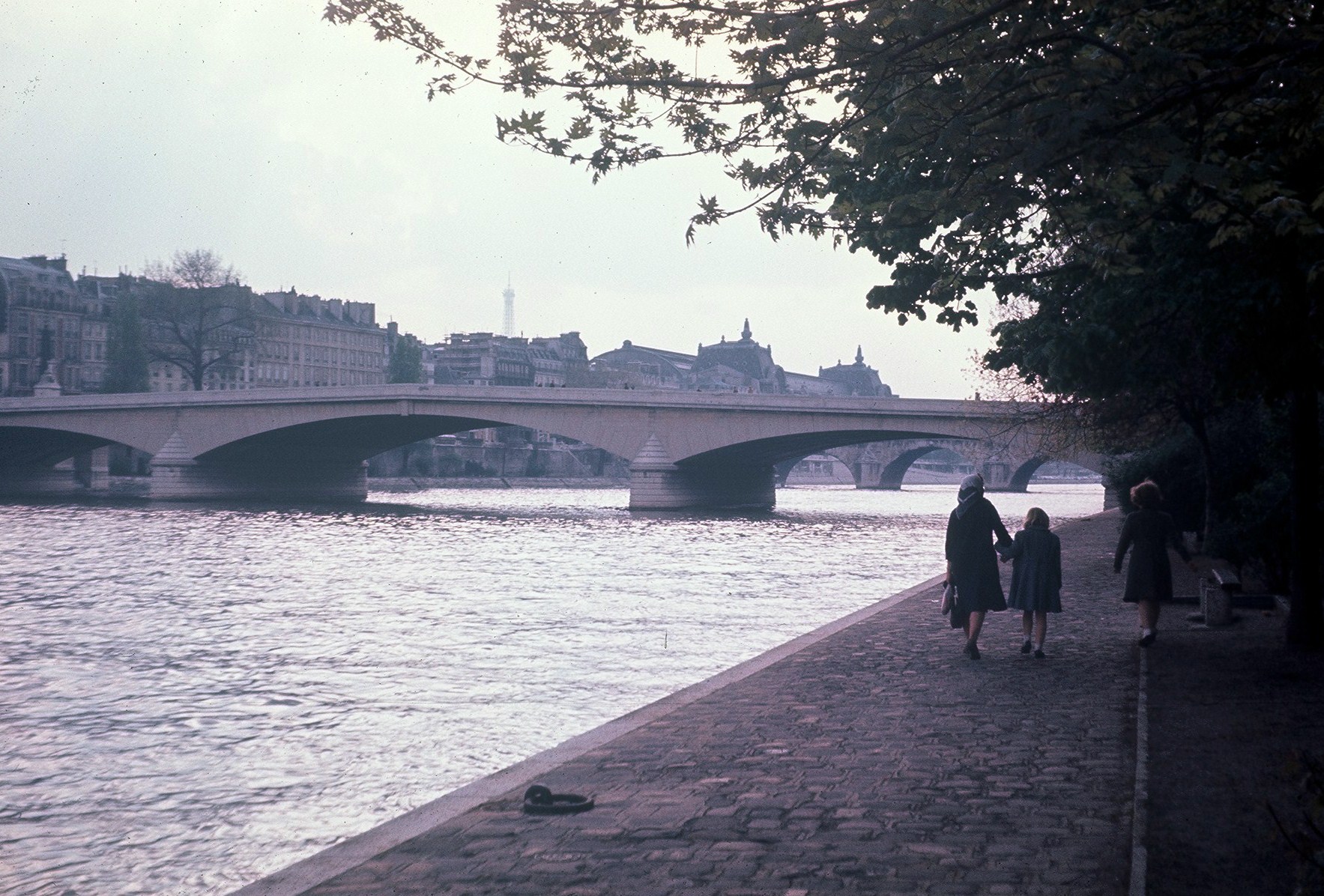 What did we do? Here my memories are overladen by those from subsequent trips and, alas, my father took only a couple of photographs. But there is one of us walking by the Seine and another of Alison and me pushing around a toy sailboat on the pond in the Jardin du Luxembourg. I do remember that.