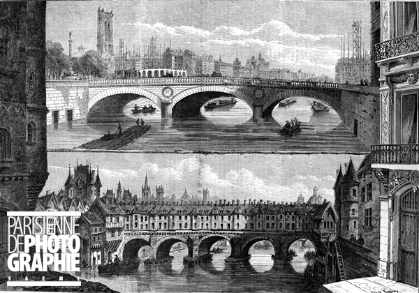 Paris and Its Environs notes that when the Pont au Change was “again carried away by a great flood in 1616, with all the houses that were upon it, some of the furniture…was washed as far as the town of St. Denis.” The bridge was rebuilt and the houses reappeared, not to be removed until 1788, by the order of Louis XVI.