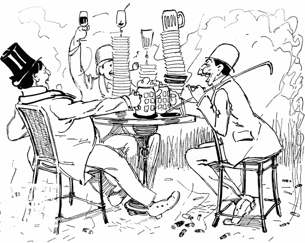 If you look closely at this caricature of a night of excess, you will spot the treasure trove of cigar and cigarette butts that scavengers sought.