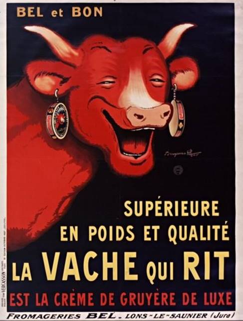 Various legends are associated with the creation of this pasteurized cheese made from cream mixed with gruyère, comté, emmenthal, edam, cheddar, or gouda, or some combination of these cheeses (today, the recipe differs according to the country in which it is made). Some say it was a Swiss invention from 1910; others say it was a French invention from about 1920. According to Wikipedia, the name and the image come from French meat supply trucks in the First World War, which were decorated with the image of a laughing cow and known as “Wachkyrie” or “Vachkyrie” – a pun on the “Valkyrie” symbol that marked German army trucks. Frankly, I thought it was one of those language myths that don’t hold up to close scrutiny. So I checked with Gallica.