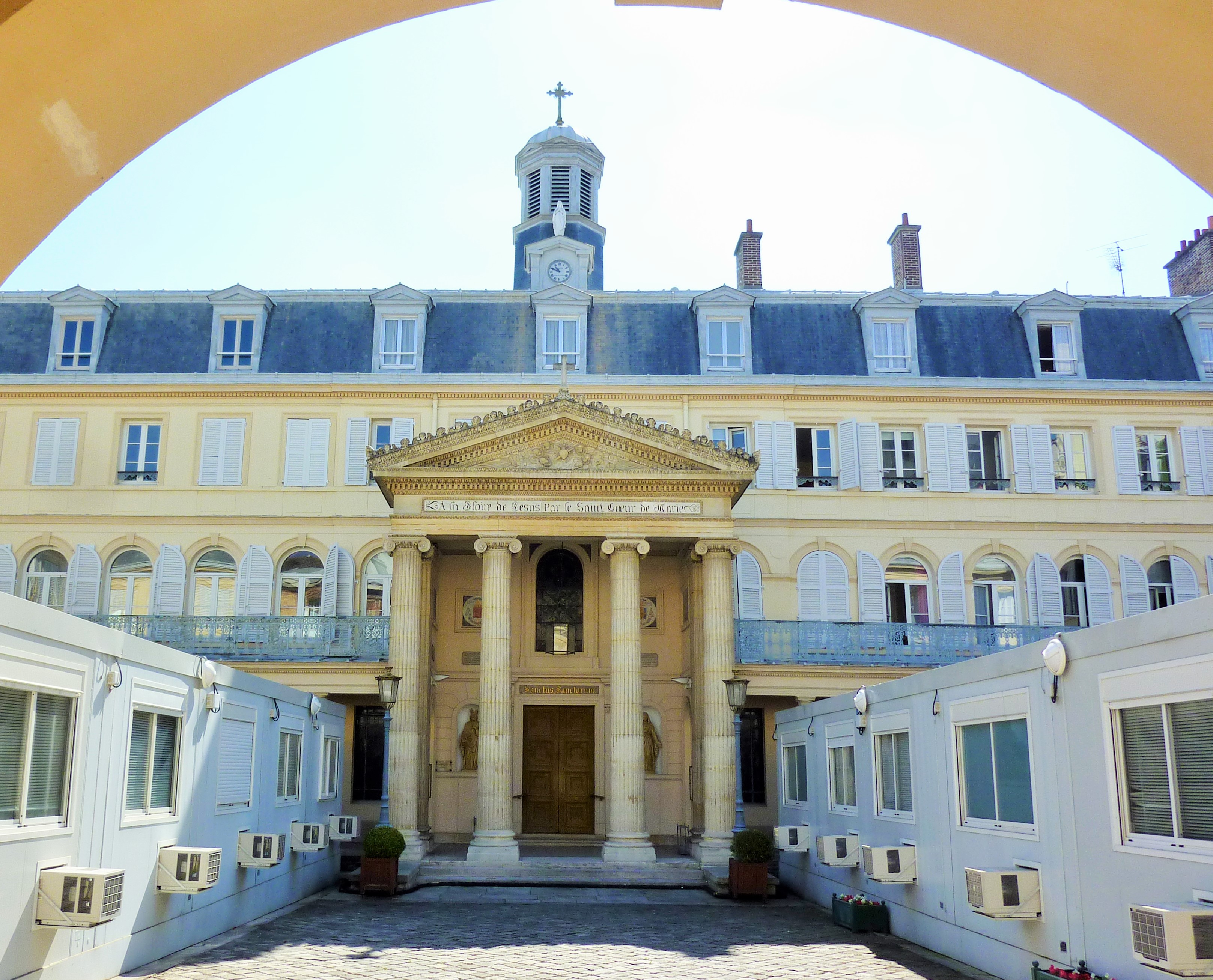 The clinic was in an 18th century building with a courtyard, somewhat marred by the installation of portable offices. Despite the urgency of the situation, I simply couldn’t resist taking a photograph.