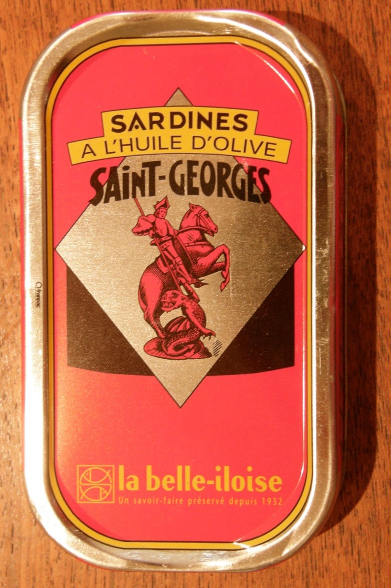 As with so many things in life, what constitutes a sardine depends on our vantage point. A sardine may not always be a sardine. Perhaps it is not inappropriate that this can of sardines is embellished with St. George slaying a dragon.