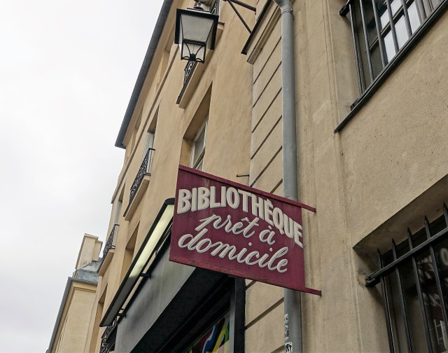 Notice the words “prêt à domicile.” This was a lending library – Paris’s first.