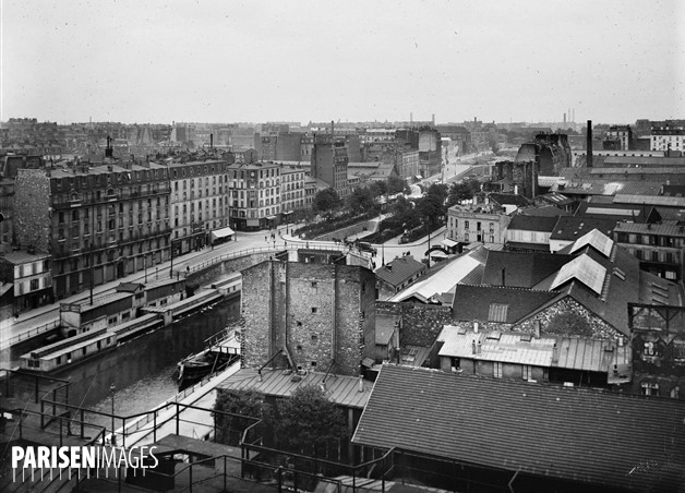 Immeubles parisiens. Quartier autour du canal Saint-Martin. Vue panoramique prise de la tour de l’usine 132-134 quai de Jemmapes. Paris (Xème arr.). Photographie de Charles Lansiaux (1855-1939). Plaque de verre, 07 septembre 1920. Département Histoire de l’Architecture et Archéologie de Paris.